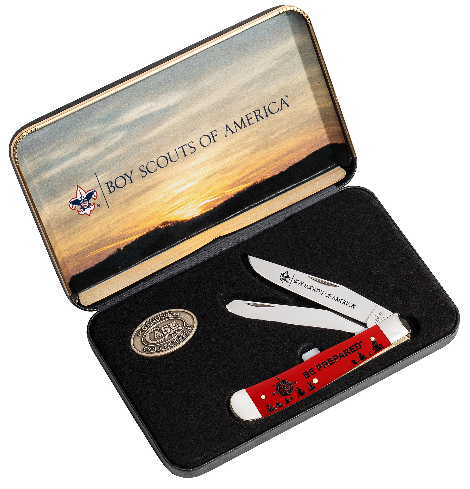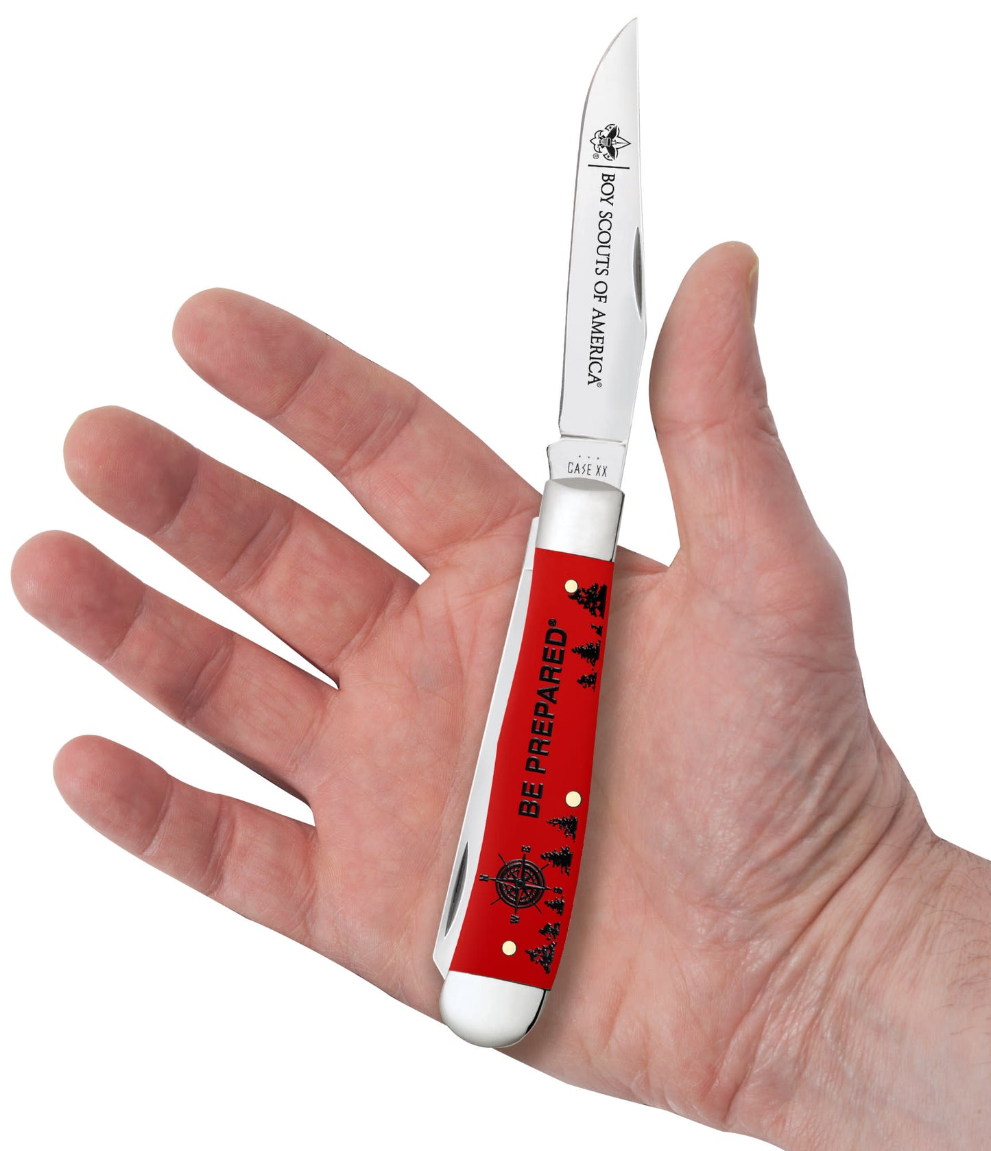 This Trapper is a part of the Scouting America™ collection. Case honors its longstanding commitment to Scouting with knives and commemoratives. Be prepared to add them to your collection. The Trapper gets its name from the consumer it was designed for. Because of its basic trapping and skinning blades and its light weight, it is a must-have knife for those who trap small game. It is a jack knife with two full length blades; a slender Clip and a long Spey. The Clip blade is commonly used as a multi-purpose blade and preferred for detail work while the Spey blade is commonly used as an all-purpose utility blade. This knife is constructed with Case Tru-Sharp™ stainless steel which is a special high-carbon steel that helps the blades hold an edge longer than conventional steel. It also offers extraordinary blade strength and corrosion resistance. Comes conveniently packaged in a box. Made in Bradford, PA, USA from domestic and imported materials.