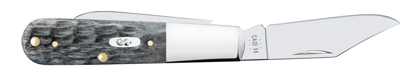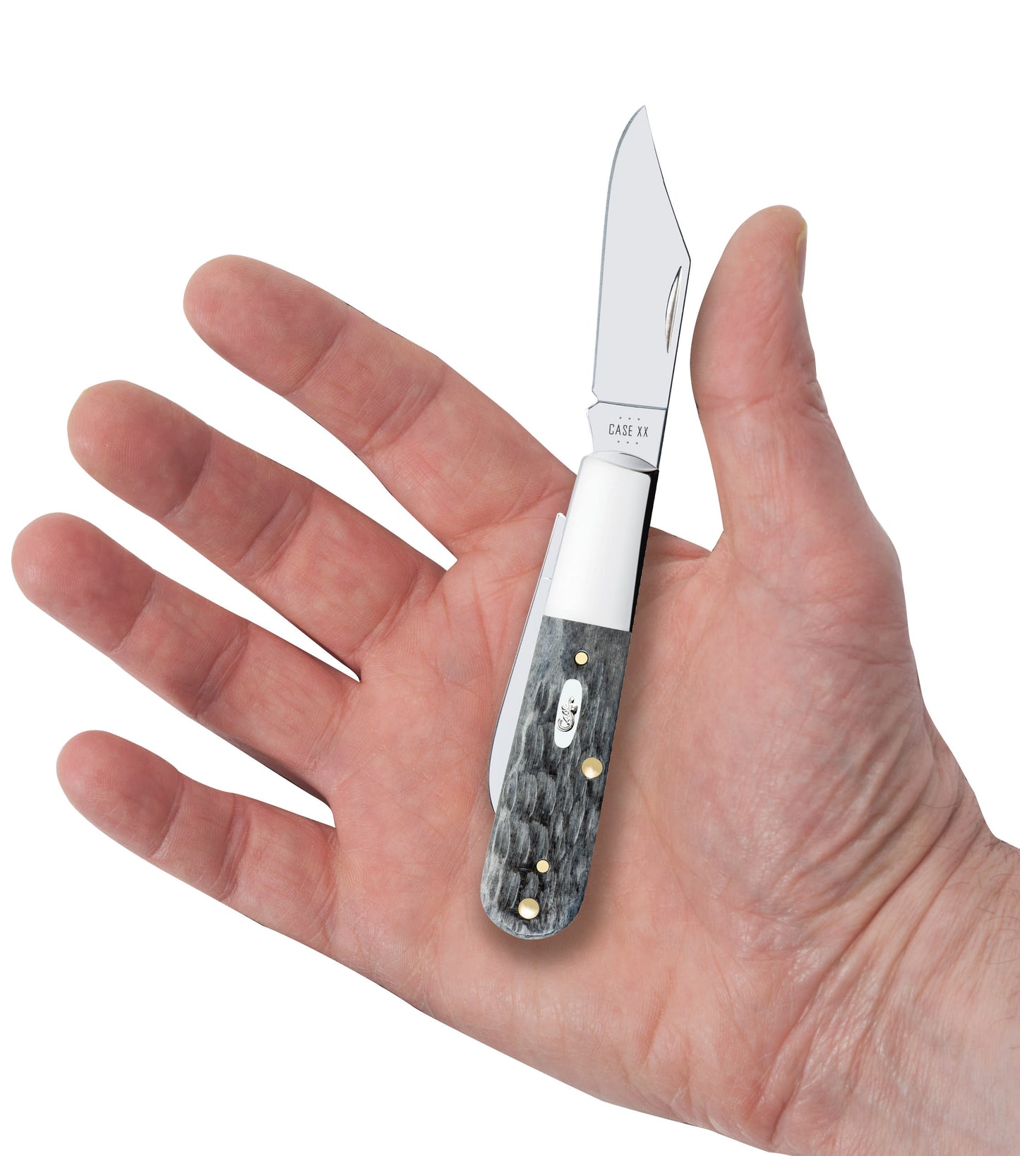 Our distinctive Gray Bone with extra Pocket Worn® finishing and easy-sharpening Carbon Steel blades will make these knives feel like familiar old friends that are always willing to lend an extra hand. The classic Barlow is back! This vintage-era Jack Knife design dates back to the early 1900's and is characterized by a single oversized pocket end bolster. Stunning, colorful handles of Bone, Kirinite®, Wood and Synthetic highlight this treasured and timeless Case pattern. Feel the history and savor the good looks of the one and only Case® Barlow. This knife is fitted with high carbon steel blades known for their high tensile strength, wear resistance, and toughness. Many prefer this steel for its edge retention and ease of re-sharpening. Since these are not stainless steel blades, a thin coat of oil applied on them after each use can help maintain their original finish. Comes conveniently packaged in a box. Made in Bradford, PA, USA from domestic and imported materials.