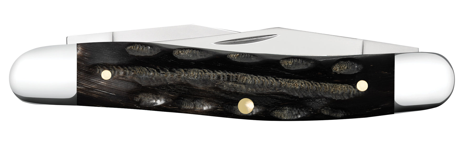 Case uses only quality steel, special ordered and tested to fit our demanding specifications. The most used are our original Chrome Vanadium (CV), Carbon Steel (CS), and our stainless option, Tru-Sharp™ surgical steel (SS). Other specialty steels may be used on occasion.