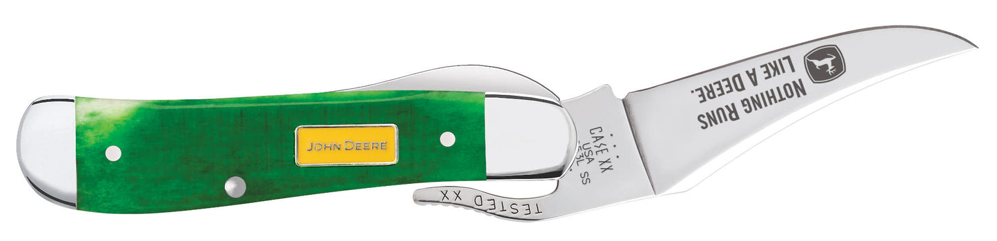 This RussLock® is a part of our John Deere collection. One of the world's most recognized names in agriculture brings you this collection of pocket folders from Case. The RussLock® knife is a pattern that was named after Case founder, J. Russel "Russ" Case. This pattern features a liner lock mechanism, along with a gimped lever for convenient one-hand opening. The Clip blade on this durable folding knife is commonly used as a multi-purpose utility blade and is preferred for detail work. This knife is constructed with Case Tru-Sharp™ stainless steel which is a special high-carbon steel that helps the blades hold an edge longer than conventional steel. It also offers extraordinary blade strength and corrosion resistance. Comes conveniently packaged in a box. Made in Bradford, PA, USA from domestic and imported materials.