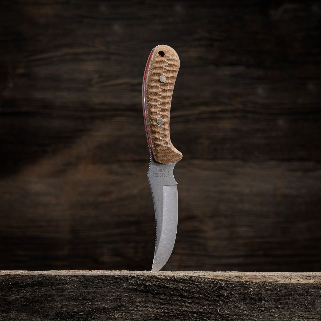 Whether you’re an avid outdoorsman or a weekend warrior, you’ll appreciate the rugged durability of a Case Ridgeback® Hunter. Our new sculpted handle Ridgeback® Hunters are made for hard work in tough conditions, with a stainless steel Swept Skinner blade that’s sabre/concave ground and your choice of ultra-tough laminate handle options, from black burlap and natural canvas to G-10. Each one is as comfortable to use as the next, packaged with a handsome leather sheath for worry-free belt carrying. Comes conveniently packaged in a box. Made in Bradford, PA, USA from domestic and imported materials.