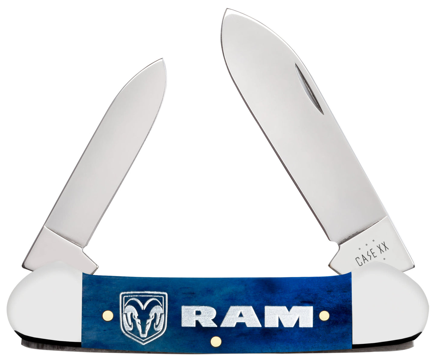 RAM® Trucks are built on a reputation for reliability and durability. And since 1889, the Case® brand has shared that very same spirit. People know that a Case® knife never quits, and when you pick one up you carry dependability with you. These specially licensed knives are no exception; each is made to help you get the tough jobs done today and for countless tomorrows. The Canoe knife gets its name from its canoe-like shaped handle. This durable folding knife features two blades on opposing ends, the Spear blade and the Pen blade. The Spear blade is used as a heavy-duty utility tool and great for piercing. The Pen blade is great for light work and good for sharpening. The Canoe knife can be used for fishing related jobs like cutting hooks off lines, cleaning fish, and cutting through finishing line easily. This knife is constructed with Case Tru-Sharp™ stainless steel which is a special high-carbon steel that helps the blades hold an edge longer than conventional steel. It also offers extraordinary blade strength and corrosion resistance. Comes conveniently packaged in a box. Made in Bradford, PA, USA from domestic and imported materials.