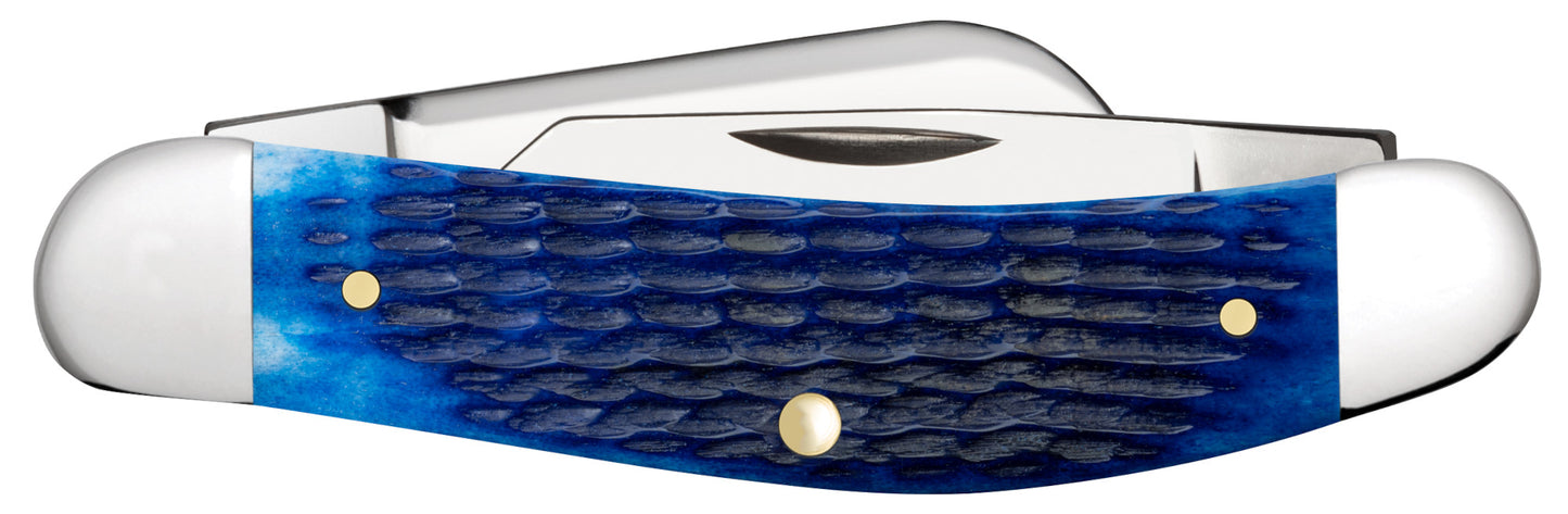 This Sowbelly is a part of the Blue Bone Family. There's a reason we call some friends "true blue". That is because we know we can always count on them, no matter what. The same can be said about our Blue Bone knives. Time and again, their stainless steel blades get the job done, and their classic blue handles look even better the longer you carry them. The Sowbelly knife was named for it resemblance to the shape of a "pig's belly". This knife is a heavy-duty version of the Stockman knife that has Clip, Spey, and Sheepfoot blades. The Clip and Sheepfoot blade sit on the pocket end while the Spey blade sites on the cap end. The Clip blade is commonly used as a multi-purpose blade and preferred for detail work. The Sheepfoot blade allows for added strength at the point making it great for carving and achieving a clean cut. The Spey blade is commonly used as an all-purpose utility blade. This knife is constructed with Case Tru-Sharp™ stainless steel which is a special high-carbon steel that helps the blades hold an edge longer than conventional steel. It also offers extraordinary blade strength and corrosion resistance. Comes conveniently packaged in a box. Made in Bradford, PA, USA from domestic and imported materials.