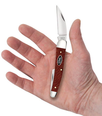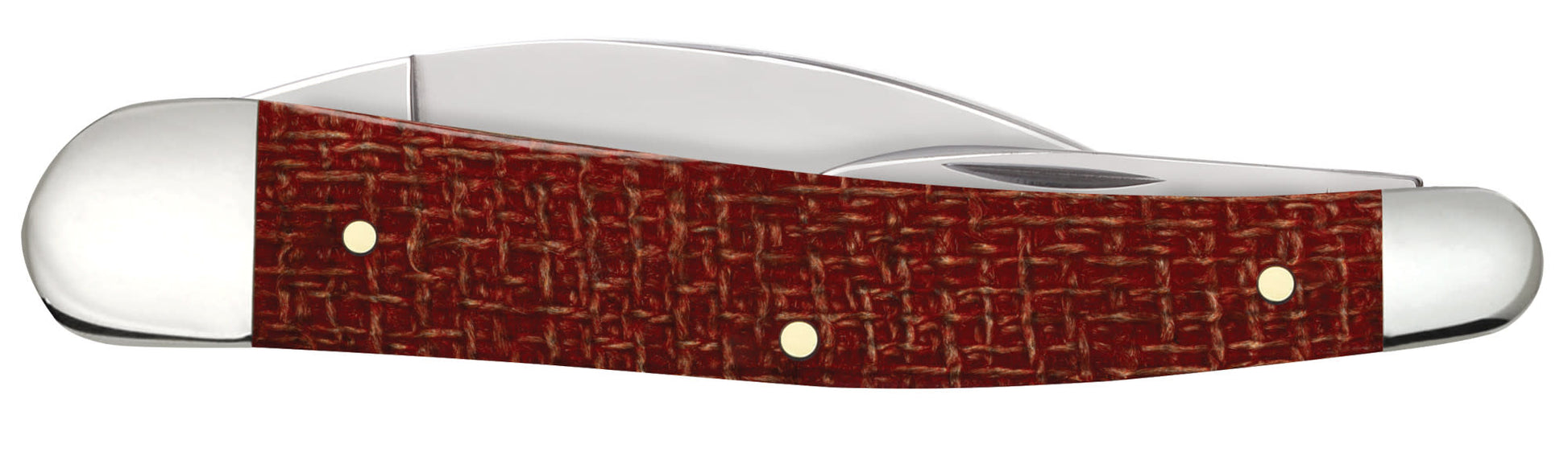 - Smooth Dark Red Burlap Micarta® handle; Case black oval shield