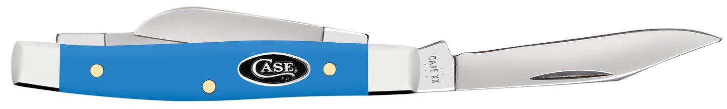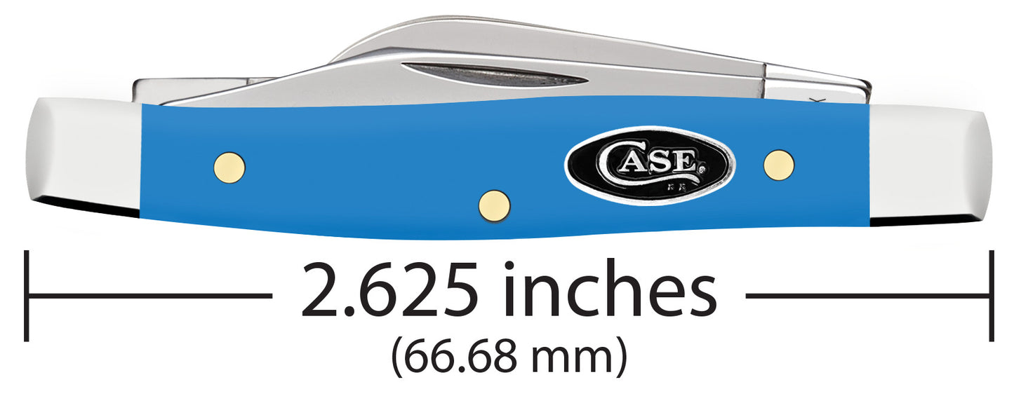 Introducing our latest collection, featuring our Light Blue Synthetic handle that combines durability with eye-catching design. Each pattern in this family sports a Black Case Oval shield at center, which strikes a contrast with the bright blue handle. Mirror-polished Tru-Sharp™ surgical steel blades add edge retention and corrosion resistance for years of dependable use. Like its big brothers this Stockman also packs three blades in a convenient but very practical pocket knife. The Clip and Sheepfoot blade sit on the pocket end while the Pen blade sits on the cap end. The Clip blade is commonly used as a multi-purpose blade and preferred for detail work. The Sheepfoot blade allows for added strength at the point making it great for carving and achieving a clean cut. The Pen blade is great for light work. This knife is constructed with Case Tru-Sharp™ stainless steel which is a special high-carbon steel that helps the blades hold an edge longer than conventional steel. It also offers extraordinary blade strength and corrosion resistance. Comes conveniently packaged in a box. Made in Bradford, PA, USA from domestic and imported materials.