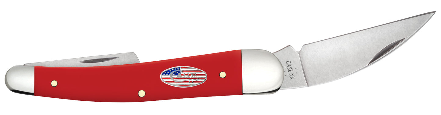 - Smooth Red Synthetic handle; Case stars & stripes shield