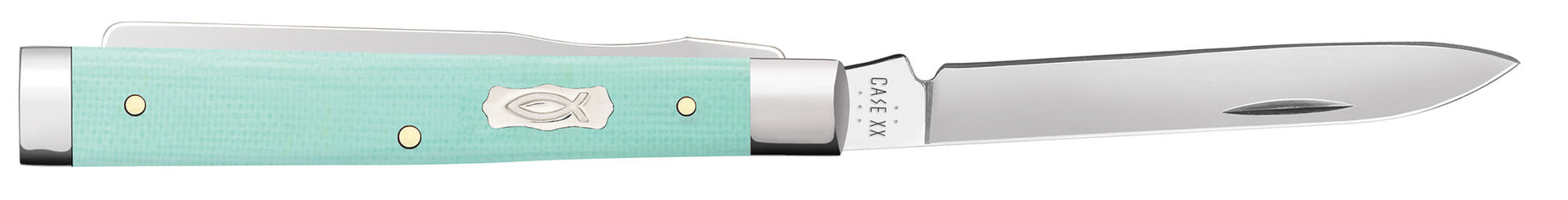 Our Seafoam Green G-10 handles are more than just aesthetically pleasing, they’re also built to endure years of use. The iconic Ichthus shield is a symbol of shared and unyielding faith. The Case Baby Doc always delivers, but only for a limited time! This pint-sized knife was modeled after the full-sized Doctor's Knife ('85SP). The pattern was named by the Case Collectors Club community at the Zippo/Case International Swap Meet in 2004 and was later introduced to the public in January, 2005. The knife hearkens back to a time when doctors carried a knife like this in their medicine bags to cut sutures and bandages, crush pills, and mix medicines with liquids while conducting housecalls. Be sure to pick up your Baby Doc from Case before it goes back to the Vault at the end of 2025! This knife is constructed with Case Tru-Sharp™ stainless steel which is a special high-carbon steel that helps the blades hold an edge longer than conventional steel. It also offers extraordinary blade strength and corrosion resistance. Comes conveniently packaged in a box. Made in Bradford, PA, USA from domestic and imported materials.