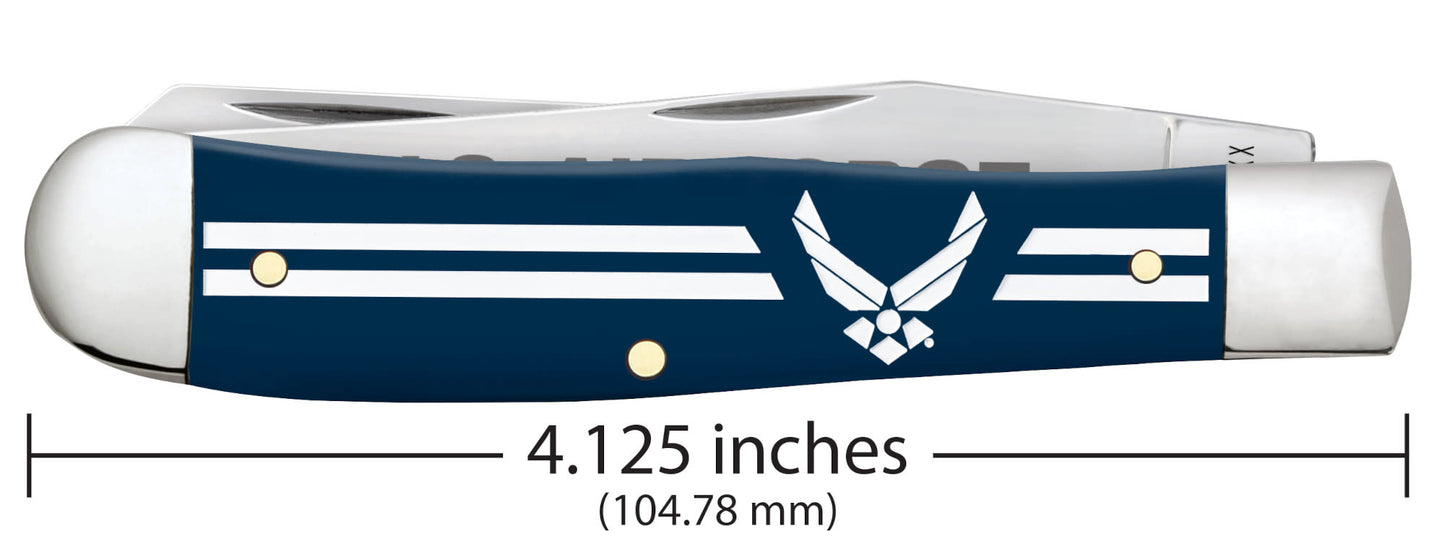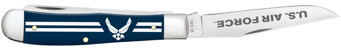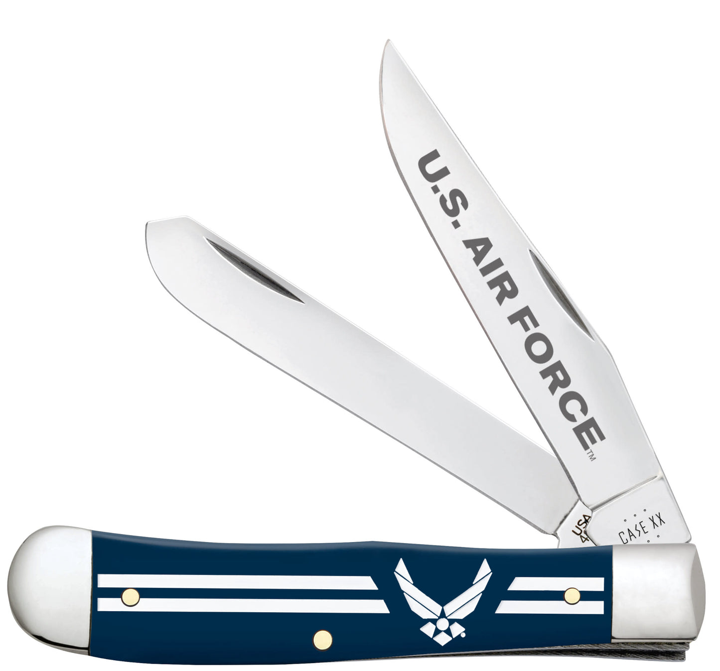 For decades, the United States Air Force™ has been the protector of the skies. Case® is honored to offer this new line of knives as a tribute to these brave and talented air professionals. Join us in thanking them for their service. The Trapper gets its name from the consumer it was designed for. Because of its basic trapping and skinning blades and its light weight, it is a must-have knife for those who trap small game. It is a jack knife with two full length blades; a slender Clip and a long Spey. The Clip blade is commonly used as a multi-purpose blade and preferred for detail work while the Spey blade is commonly used as an all-purpose utility blade. This knife is constructed with Case Tru-Sharp™ stainless steel which is a special high-carbon steel that helps the blades hold an edge longer than conventional steel. It also offers extraordinary blade strength and corrosion resistance. Comes conveniently packaged in a box. Made in Bradford, PA, USA from domestic and imported materials.