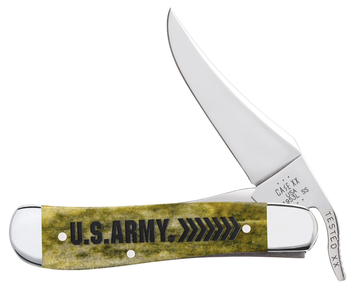 This RussLock® is a part of the United States Army collection. The U.S. Army is made up of the most dedicated, and respected soldiers in the world; protecting America's freedoms while serving at home and abroad. In honor of their relentless defense of justice and freedom, Case presents these pocket knives with American pride. The RussLock® knife is a pattern that was named after Case founder, J. Russel "Russ" Case. This pattern features a liner lock mechanism, along with a gimped lever for convenient one-hand opening. The Clip blade on this durable folding knife is commonly used as a multi-purpose utility blade and is preferred for detail work. This knife is constructed with Case Tru-Sharp™ stainless steel which is a special high-carbon steel that helps the blades hold an edge longer than conventional steel. It also offers extraordinary blade strength and corrosion resistance. Comes conveniently packaged in a box. Made in Bradford, PA, USA from domestic and imported materials.
