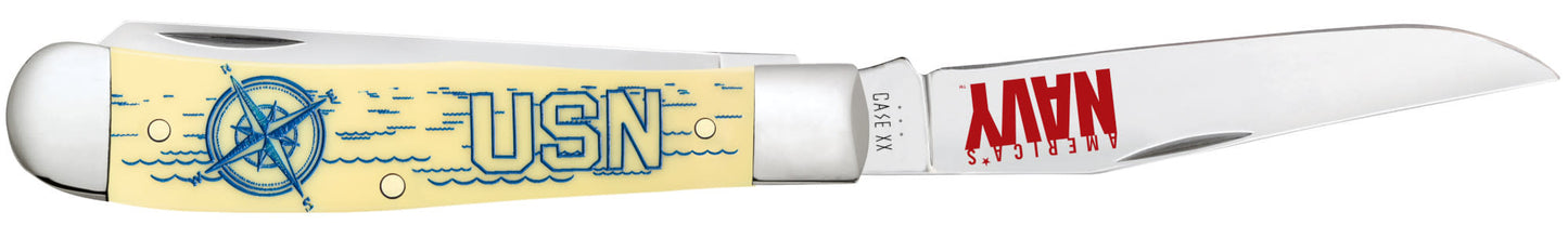 The United States Navy® has upheld the sovereignty of the seas while protecting our country from threats around the world for over 240 years. Case honors the U.S. Naval forces with the release of these unique folding pocket knives. The Trapper gets its name from the consumer it was designed for. Because of its basic trapping and skinning blades and its light weight, it is a must-have knife for those who trap small game. It is a jack knife with two full length blades; a slender Clip and a long Spey. The Clip blade is commonly used as a multi-purpose blade and preferred for detail work while the Spey blade is commonly used as an all-purpose utility blade. This knife is constructed with Case Tru-Sharp™ stainless steel which is a special high-carbon steel that helps the blades hold an edge longer than conventional steel. It also offers extraordinary blade strength and corrosion resistance. Comes conveniently packaged in a box. Made in Bradford, PA, USA from domestic and imported materials.